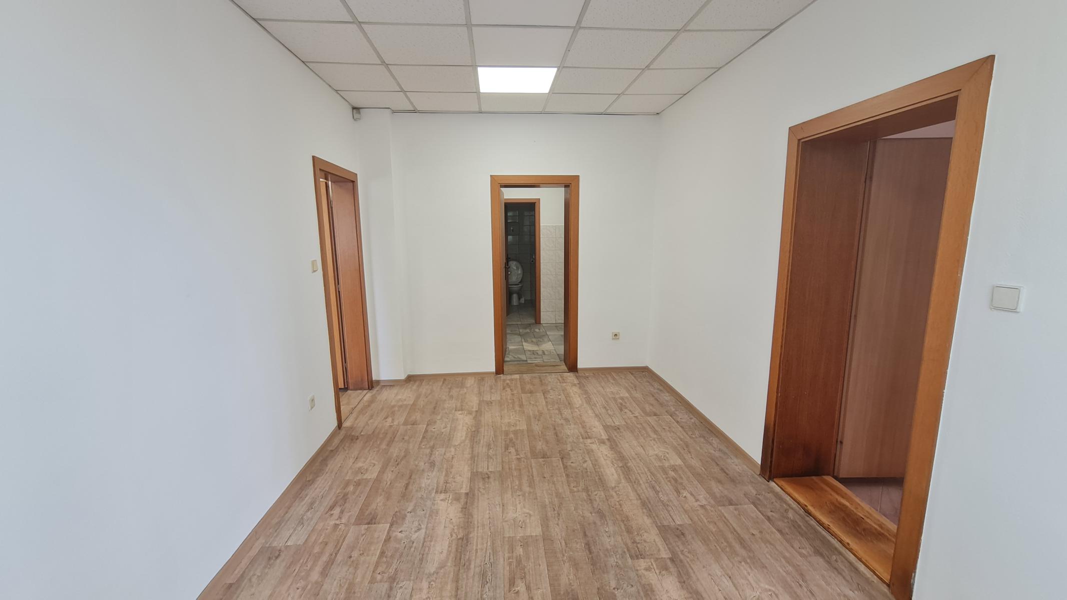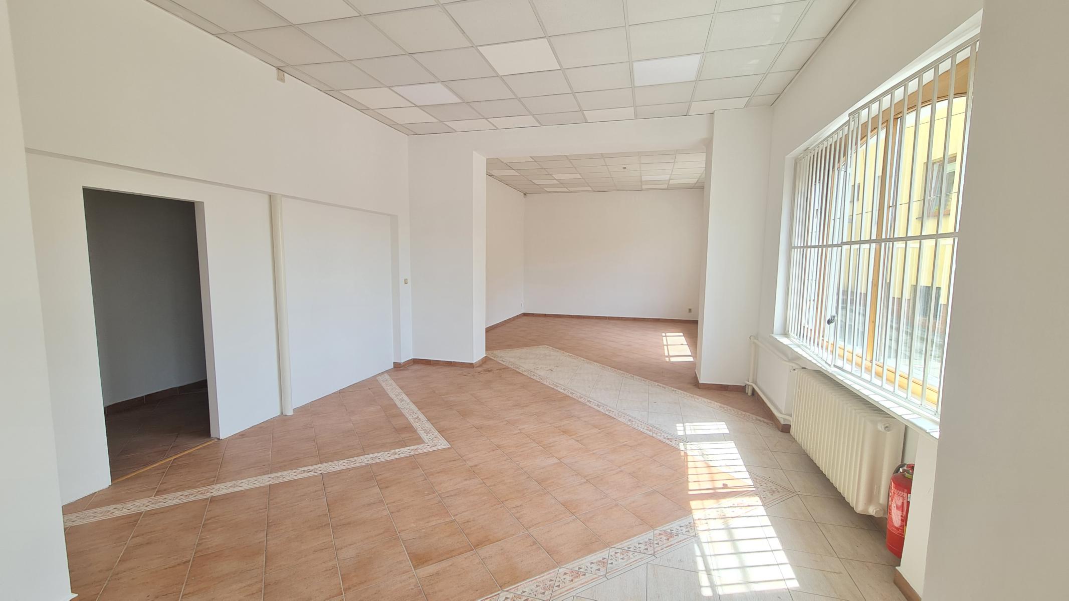 Priestory sa nachádzajú na vyvýšenom prízemí s vlastným hlavným vstupom z parkoviska a zadným vstupom z budovy. Pozostáva z dvoch vstupných chodieb, dvoch kancelárii o rozlohe 44 m2, otvoreného priestoru vhodného na obchodnú činnosť o rozlohe 88 m2, dvoch WC a kuchynky.