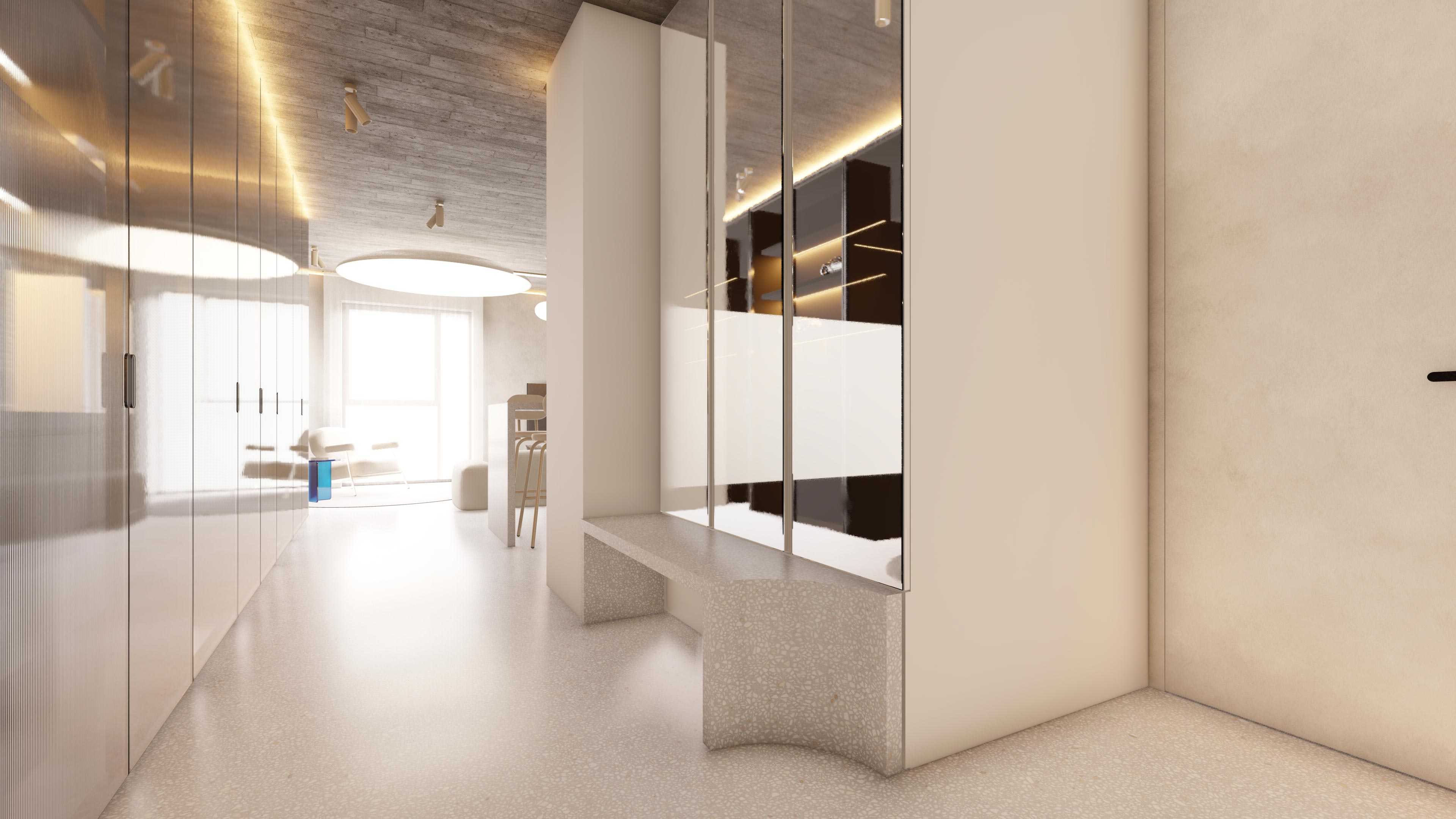 Byt sa nachádza na 6. nadzemnom podlaží, pričom na poschodí sú iba dva byty, čo zabezpečuje vysokú mieru súkromia a komornú atmosféru bývania. Už počas výstavby bol byt individuálne upravený majiteľom, čím vznikol unikátny priestor s charakterom a architektonickým presahom. Elegantné zaoblené steny, priznaný betónový strop a veľkoformátové presklenia vytvárajú moderný až galerijný dojem. Byt sa predáva v stave holobyt, pripravený na finálne dokončenie podľa predstáv nového majiteľa.