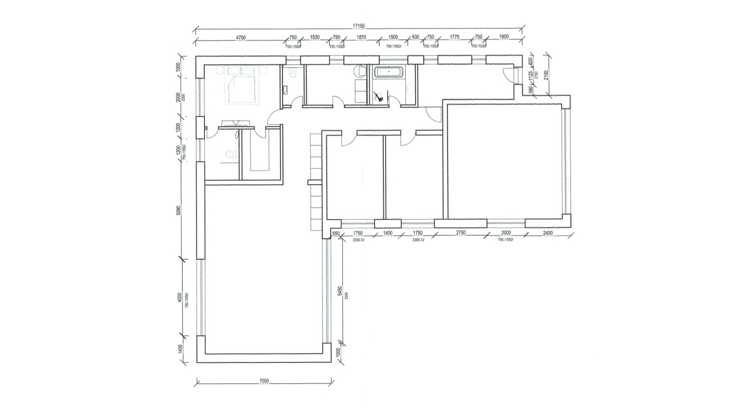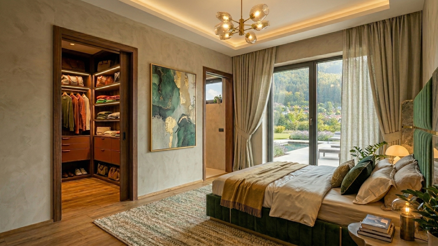 Obývačka prepojená s kuchyňou a jedálňou = prirodzené centrum domu pre každodenný život aj spoločné večery. Spálňa s vlastnou kúpeľňou a šatníkom ako samostatnou miestnosťou. Dve ďalšie izby: detská, pracovňa, hosťovská - podľa vašich priorít. Druhá kúpeľňa, samostatná toaleta, veľká technická miestnosť, chodba, predsieň s úložným priestorom. Krytá terasa prístupná zo spoločenskej časti.