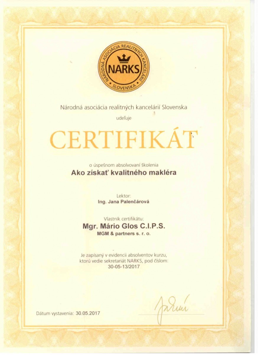 Realitná kancelária MGM má dlhoročné skúsenosti s predajom nehnuteľností a na základe toho som si ich vybral ako skutočne dobrých profesionálov. Na prezentáciu nehnuteľnosti používajú rôzne technológie a tým celá prezentácia je na vysokej úrovni. Pre mňa dôležitám faktorom je aj to, že pri predaji aj kúpe vyriešia všetko za mňa, boli ochotní prispôsobiť svoj čas mne. Snažia sa vo svojej práci stále zdokonaľovať a napredovať. MGM môžem odporúčať a môžu rátať s mojou podporou a spoluprácou.