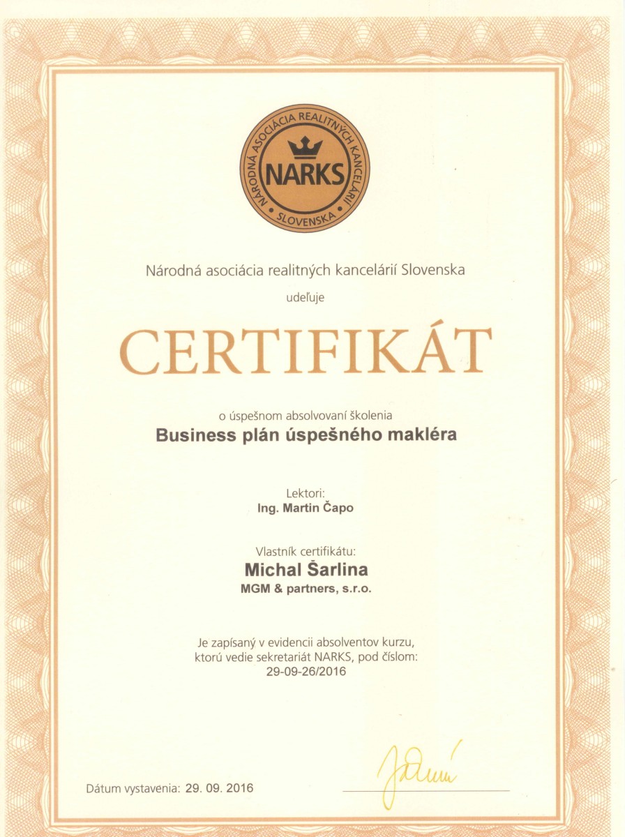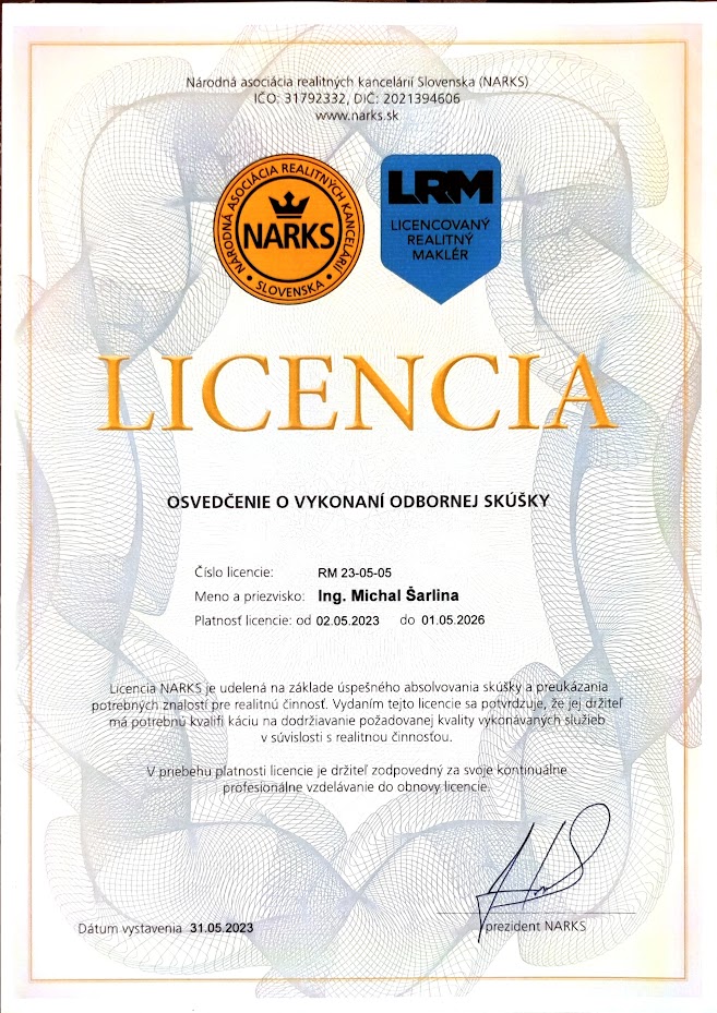 Michal Šarlina je absolventom Žilinskej univerzity. Do realitného biznisu sa rozhodol vstúpiť na základe potreby zmeny pracovnej oblasti a aj kvôli zaujímavosti tejto profesie. Hľadanie ideálneho bývania pre svojich klientov považuje za výzvu urobiť maximum, aby sa ich predstavy čo najviac zhodovali so skutočnosťou. Váži si dôveru, ktorú mu klienti prejavujú. Ich spokojnosť je preňho najväčšou odmenou. Je veľký fanúšik motoršportu a svoj voľný čas trávi s rodinou a priateľmi.