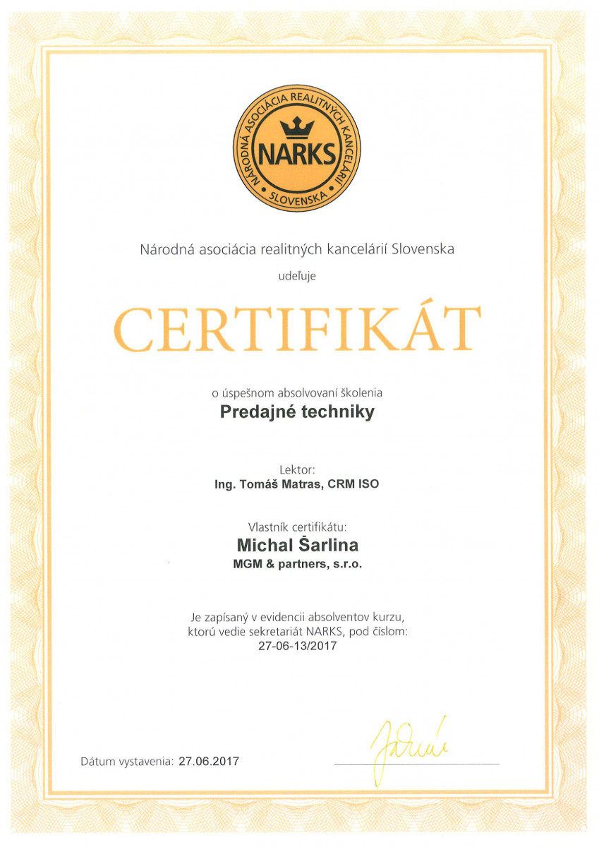 Ďakujem Michalovi a realitnej kancelárii MGM za skvelú spoluprácu pri predaji môjho bytu v Žiline. Všetko prebehlo rýchlo, bez problémov a vďaka tomu som sa mohla venovať iným veciam, nakoľko mal Michal moju plnú dôveru.