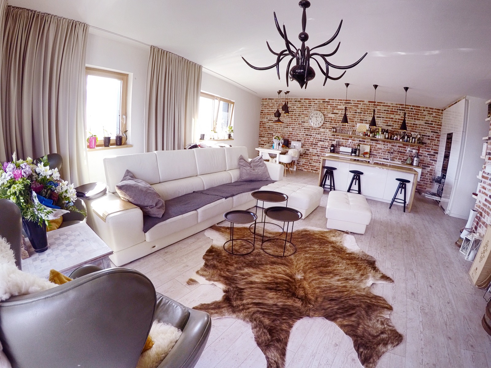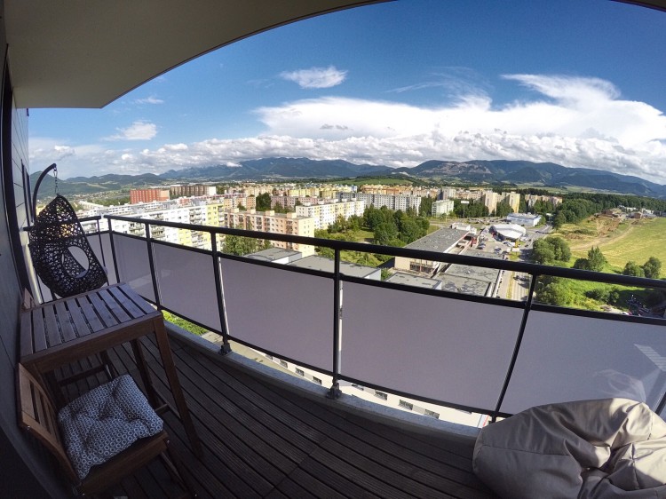 Z pohľadu predajcu- realitnej kancelárie nás zaujala najmä netradičná „zavesená“ kuchynská linka v minimalistickom dizajne, luxusne pôsobiace závesy z pravej francúzskej látky a manželská posteľ s vysokým čelom. Celkový dojem dotvárali svietidlá, ktoré nielen pôsobili, ale v skutku boli jedinečné- od intuitívneho podsvietenia až po aristokratický luster v obývacej izbe. No a na záver nás doslova dostala terasa (15 m2) s grilom, barovým sedením, tuli vakmi, presklenným zábradlím a neopakovateľným výhľadom na zasnežené štíty hôr z výšky bezmála 50 m.