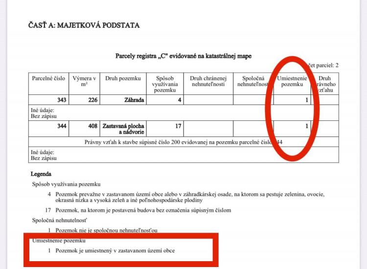 Informáciu, či sa pozemok nachádza v intraviláne alebo extraviláne zistíme z listu vlastníctva (foto v galérii).