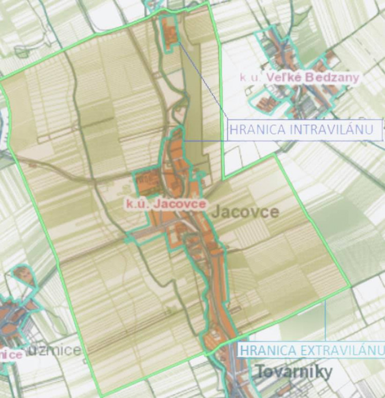 Intravilán=centrálna časť katastrálneho územia vyznačujúca sa súvislo zastavanými a na zastavanie určenými pozemkami, vrátane ciest, zelene, technickej a občianskej vybavenosti.