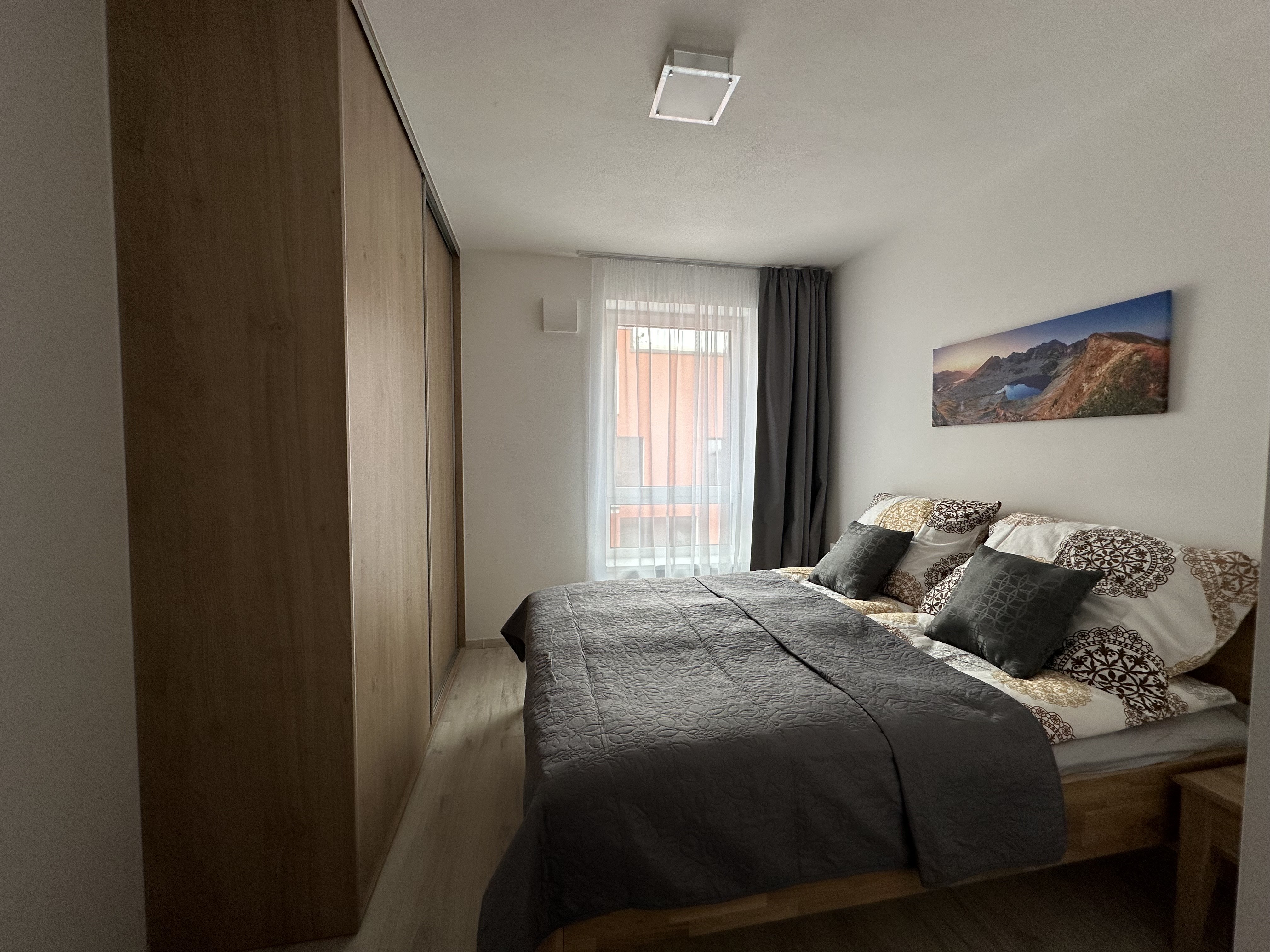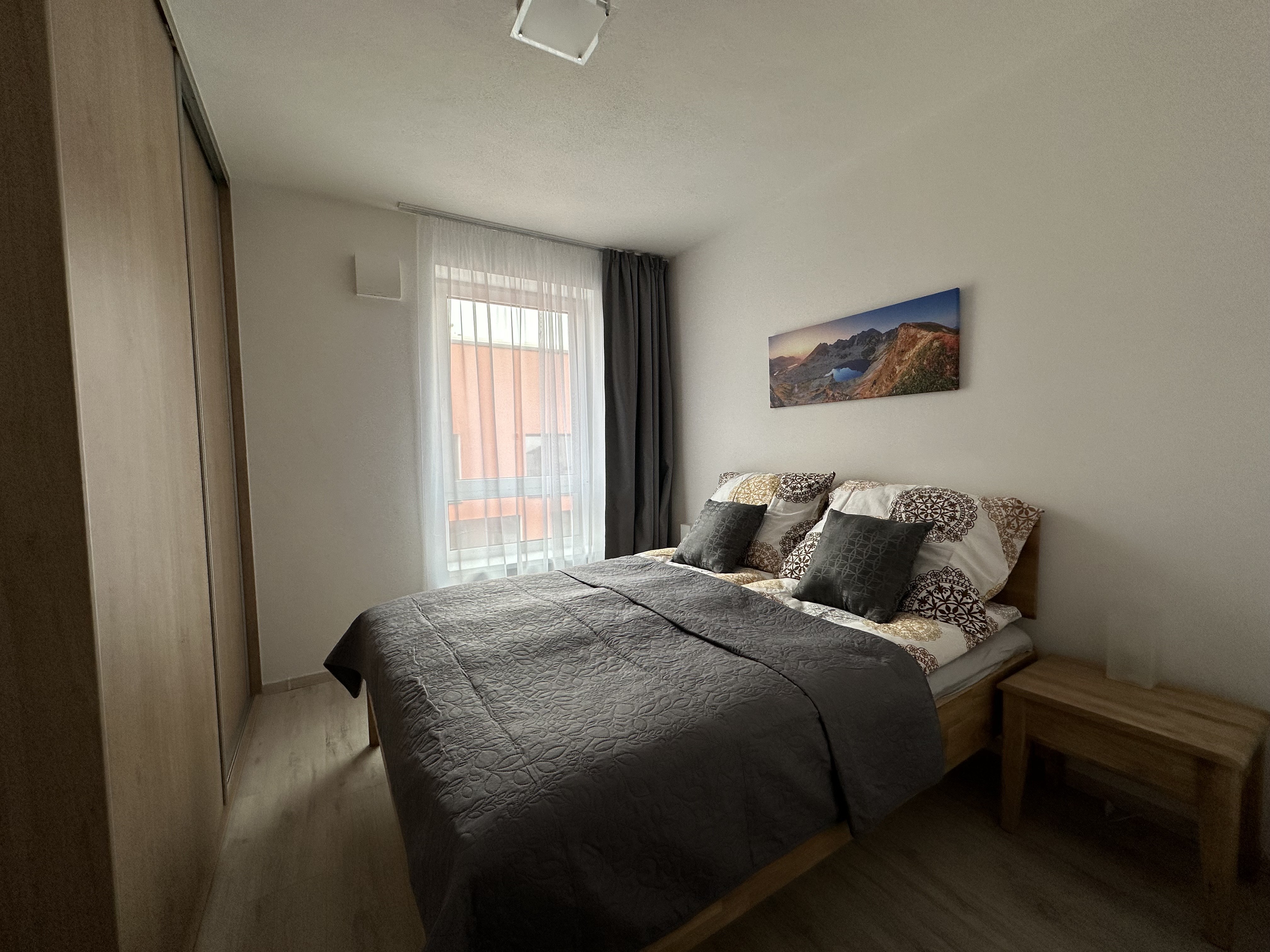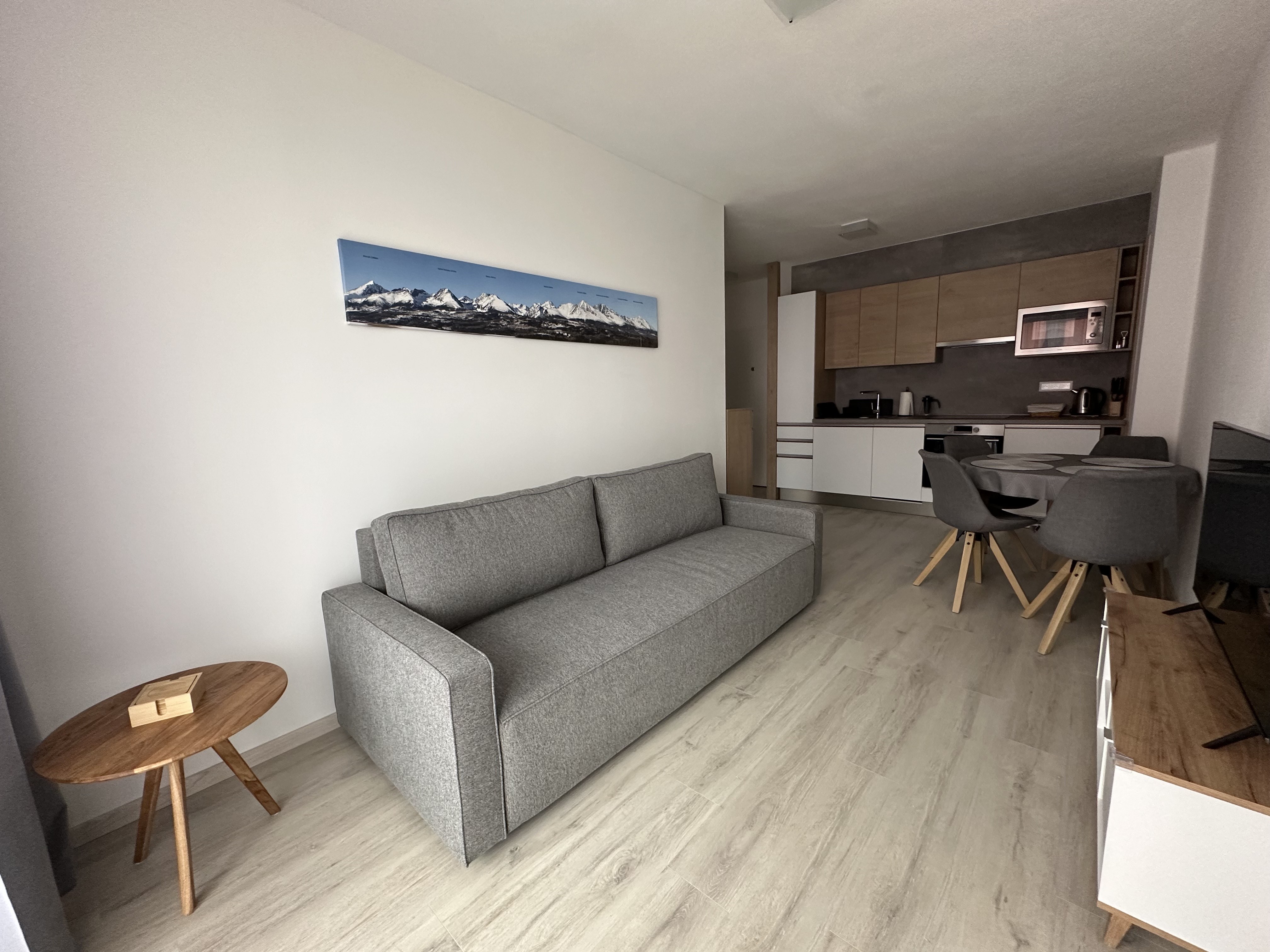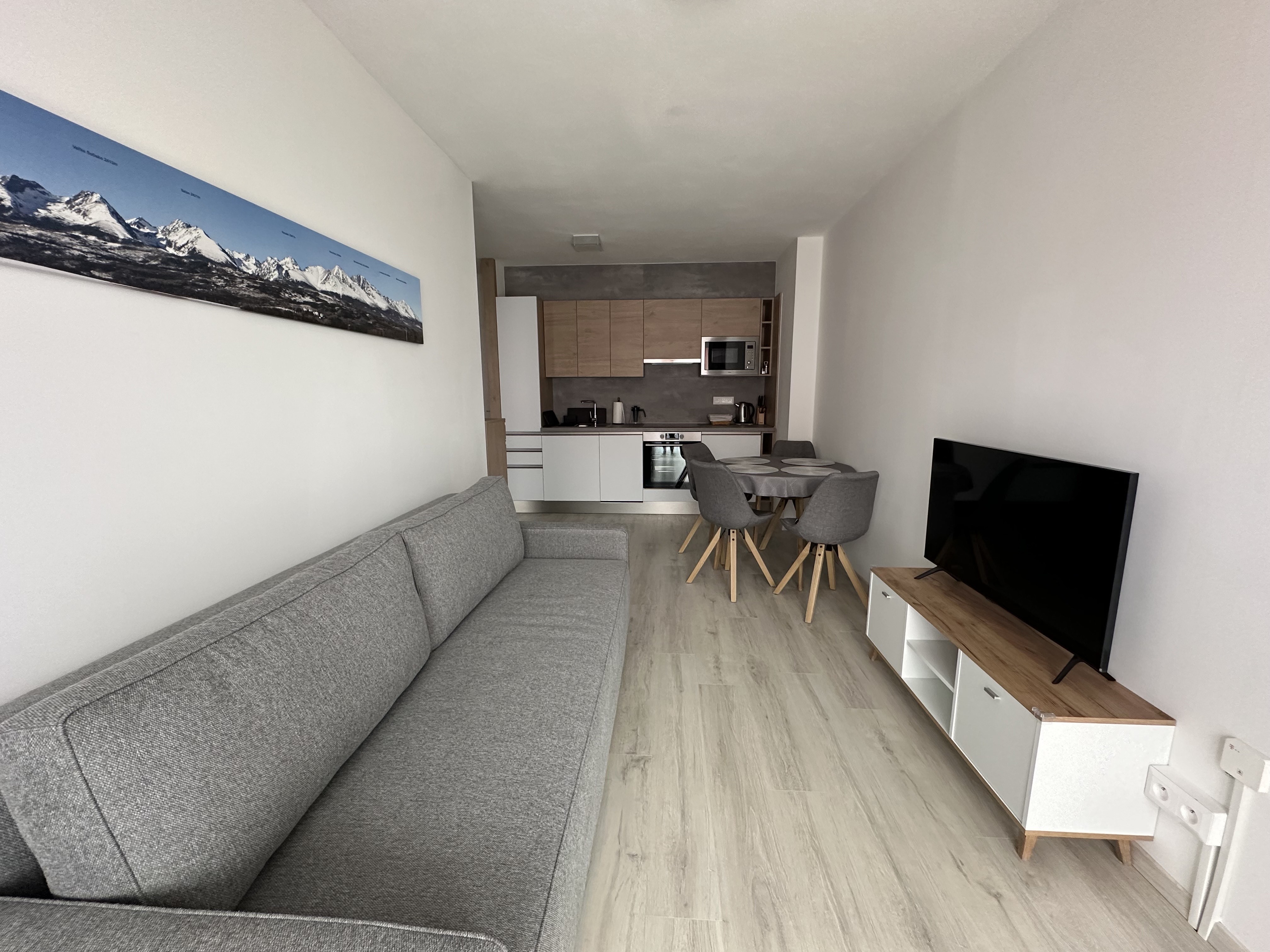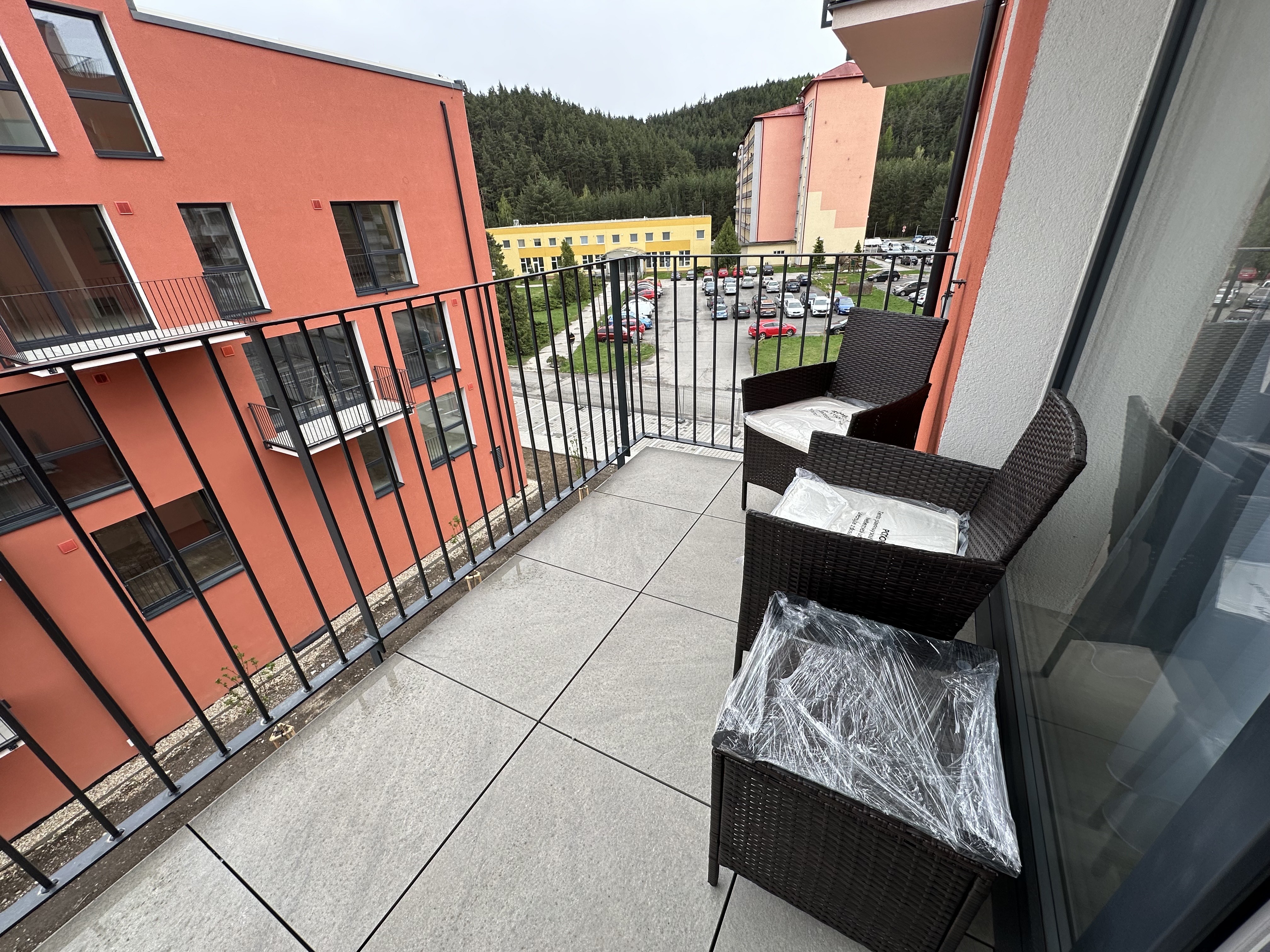 Pohľad na mesto Svit, v pozadí budova spoločnosti Chemosvit aVysoké Tatry