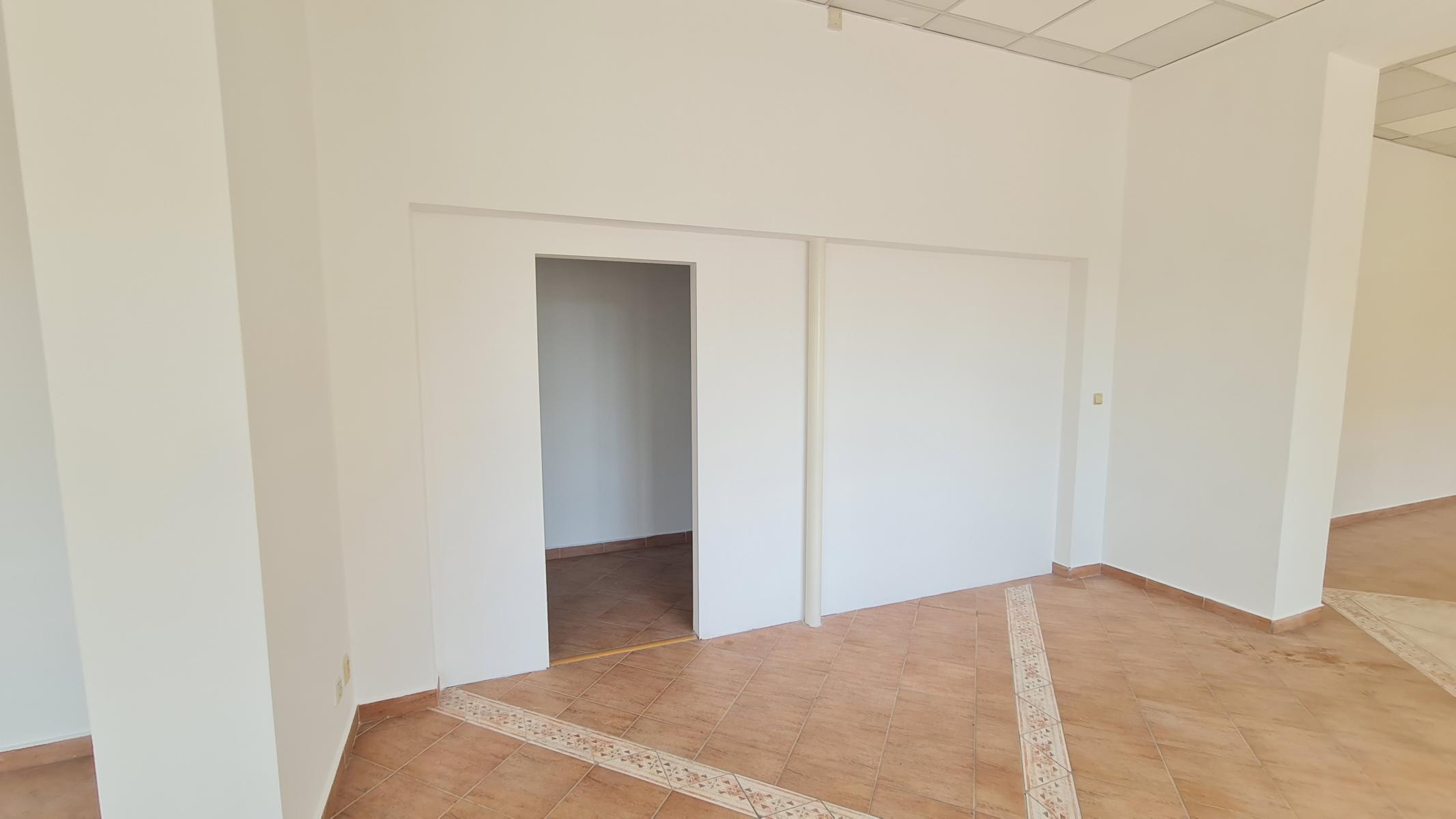 Priestory sa nachádzajú na vyvýšenom prízemí s vlastným hlavným vstupom z parkoviska a zadným vstupom z budovy. Pozostáva z dvoch vstupných chodieb, dvoch kancelárii o rozlohe 44 m2, otvoreného priestoru vhodného na obchodnú činnosť o rozlohe 88 m2, dvoch WC a kuchynky.