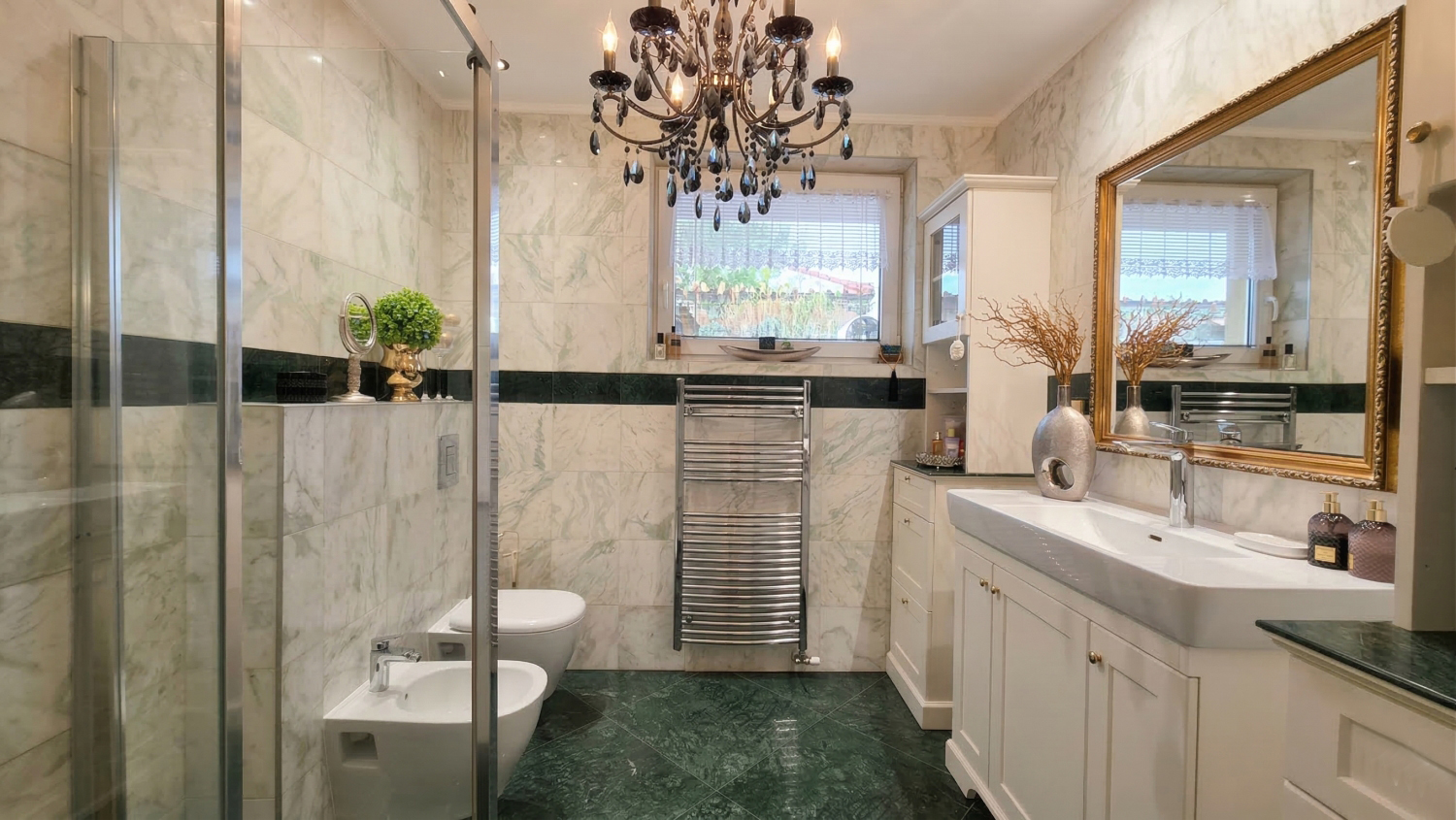 Zrekonštruovaný exteriér domu z tehly, zimná záhrada na mieru, nadštandardná garáž. Interiér spája formálnu eleganciu s funkčným pohodlím súčasnosti. V kuchyni štýlové spotrebiče Gorenje a Whirlpool, skrytá práčka LG, sušička Whirlpool. Radiátory v izbách, vyhrievací rebrík v kúpeľni. Inžinierske siete: voda, plyn, elektrina, kanalizácia, TV, internet.