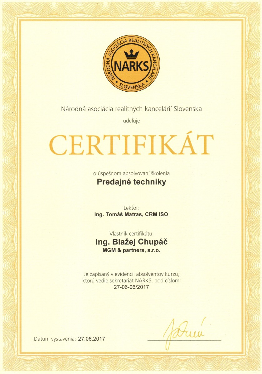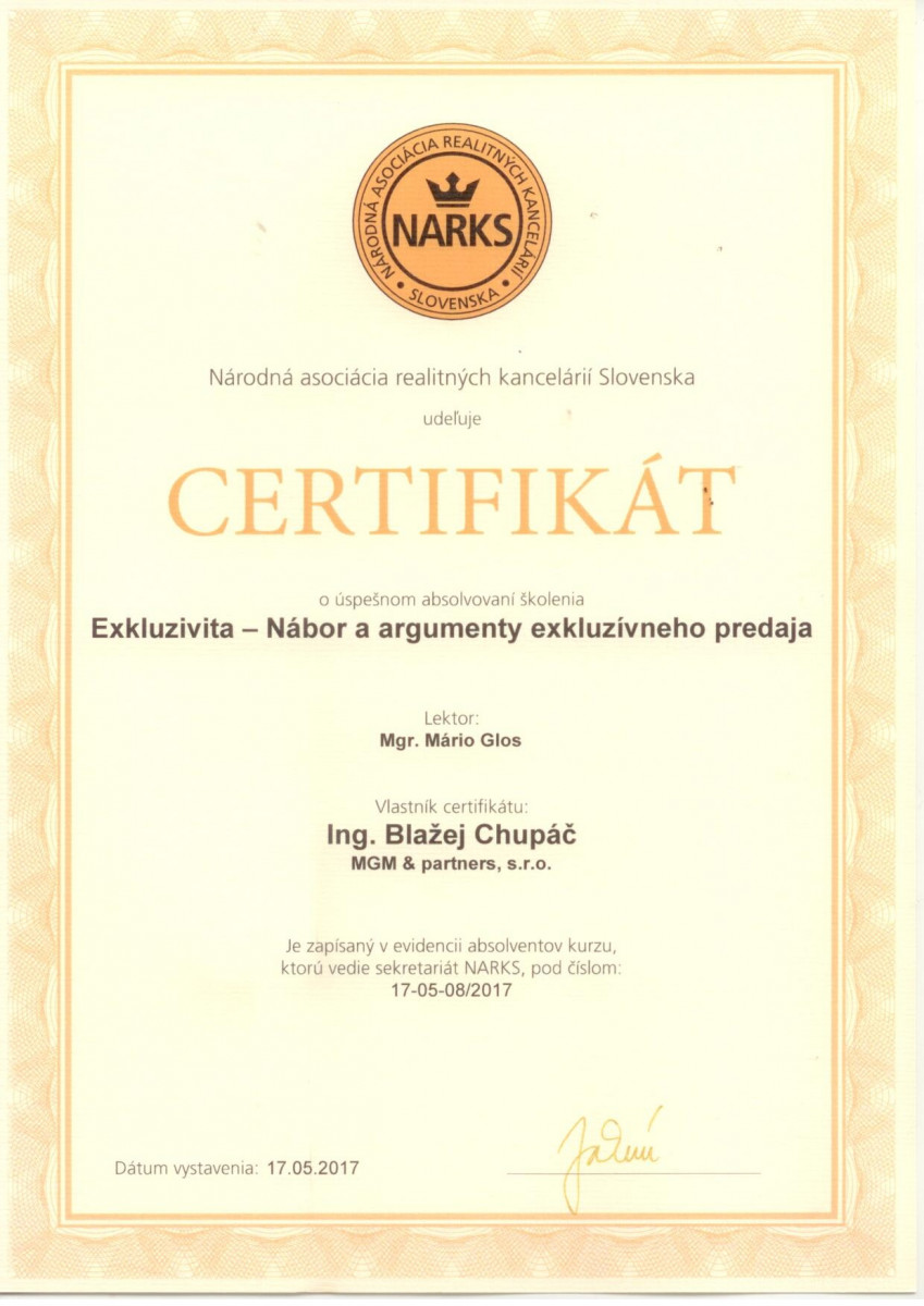 Realitnú kanceláriu MGM som oslovil na základe známeho a tiež vďaka prístupu Mária Glosa. Dostal som kompletný servis, kedže ja som nemal čas a skúsenosti s touto prácou. Realitnú kanceláriu som oslovil aj ďalej, lebo som bol spokojný so spoluprácou a odporúčam ju aj známym pri predaji a kúpe nehnuteľnosti.