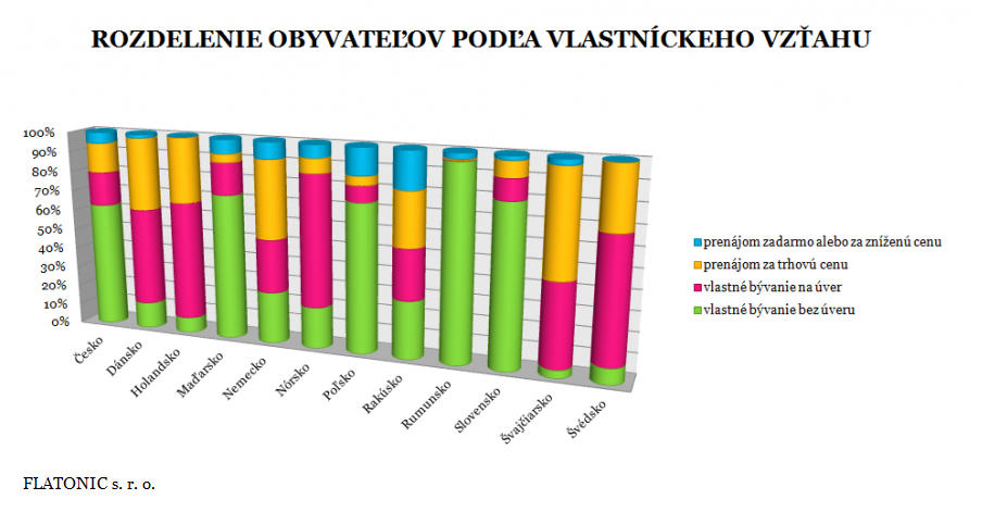 Verte či nie, vo vlastnom dome alebo byte a bez úveru bývajú až štyri pätiny slovenských domácností. Je to najvyšší podiel v rámci Vyšehradskej štvorky a zároveň piaty najvyšší v celej Európskej únii. Európsky priemer sa nachádza na úrovni necelých 43 %. Nad priemerom sa umiestnili aj Poliaci, Maďari a Česi (62,8 %). V Rakúsku žije vo vlastnom a zároveň bez hypotéky len necelá tretina domácností (29 %). Najviac na dlh žijú podľa analýzy severania. Naopak, v Rumunsku má povinnosť splácať hypotéku ani nie percento populácie.